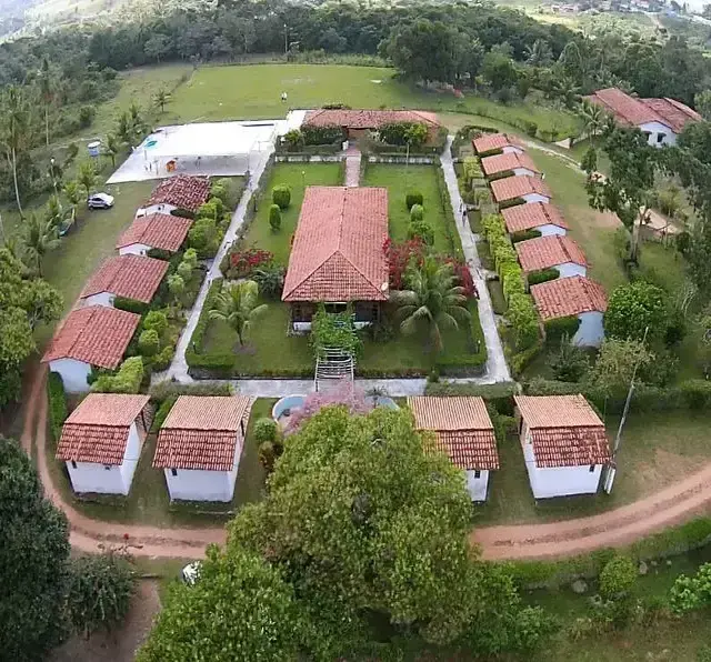 Chalés e apartamentos com ar-condicionado, frigobar, chuveiro elétrico e TV LED.